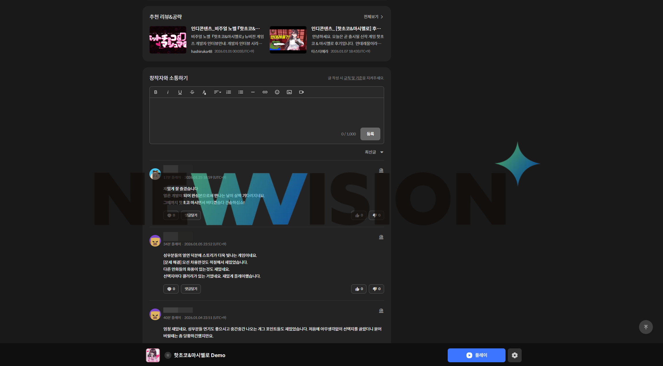 여유롭게, 데모분량을 전부 플레이한 유저분의 피드백이 필요하다고 판단한 저희는 스토브의 인디 부스트 랩을 발견하여 온라인 전시를 다음 목표로 잡았습니다