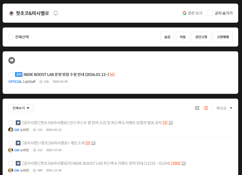 인디 부스트 랩 링크 : https://page.onstove.com/boostlab/global/list/143911?page=1